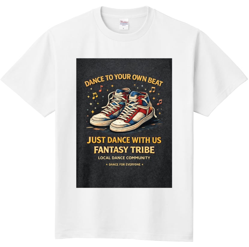 FANTASY TRIBE オリジナルTシャツ(シューズ)で、あなたの毎日をもっとスタイリッシュに!この特別なデザインのTシャツは、FANTASY TRIBEを象徴するデザインが施されており、シンプルながらも目を引く一着です。ダンスの練習やイベントはもちろん、日常のカジュアルコーディネートにも最適です。仲間とのお揃いコーディネートで、気分を盛り上げること間違いなし!軽やかな素材で作られており、動きやすさも追求。さまざまなアクティビティにフィットする仕上がりになっています。